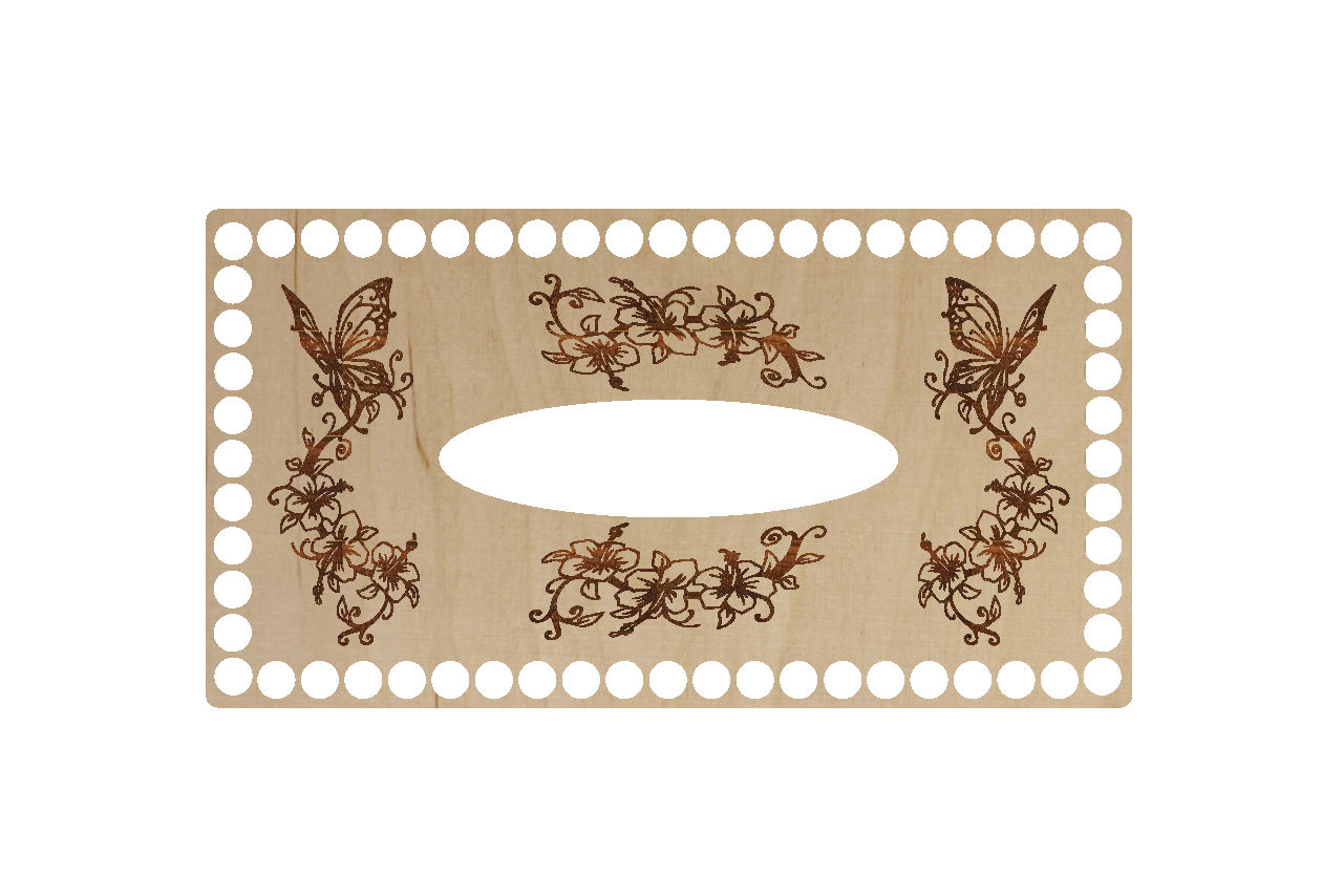 Baza Prostokątna 26×14,5cm z otworem na chusteczki Grawer Kwiaty i Motyle