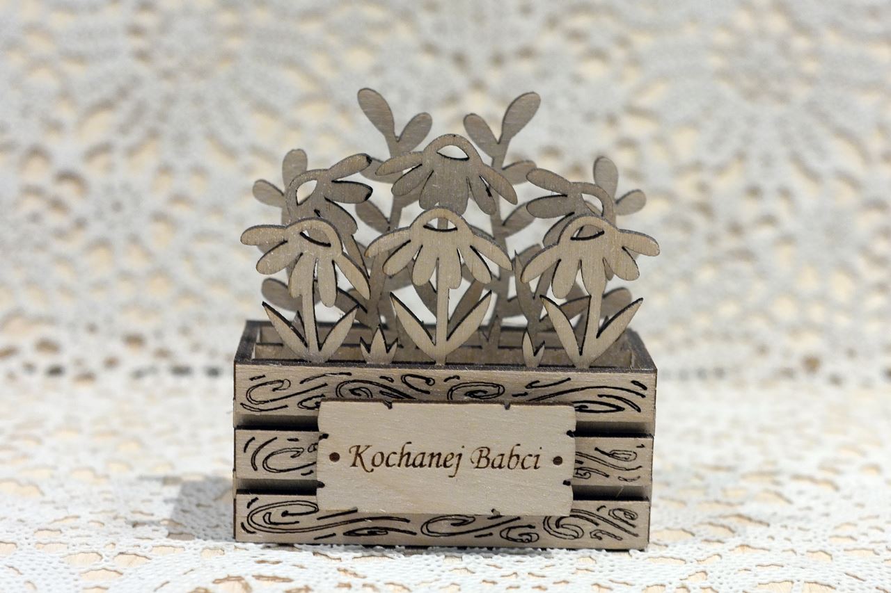 Box deski z kwiatami 2 z tabliczką “Kochanej Babci”