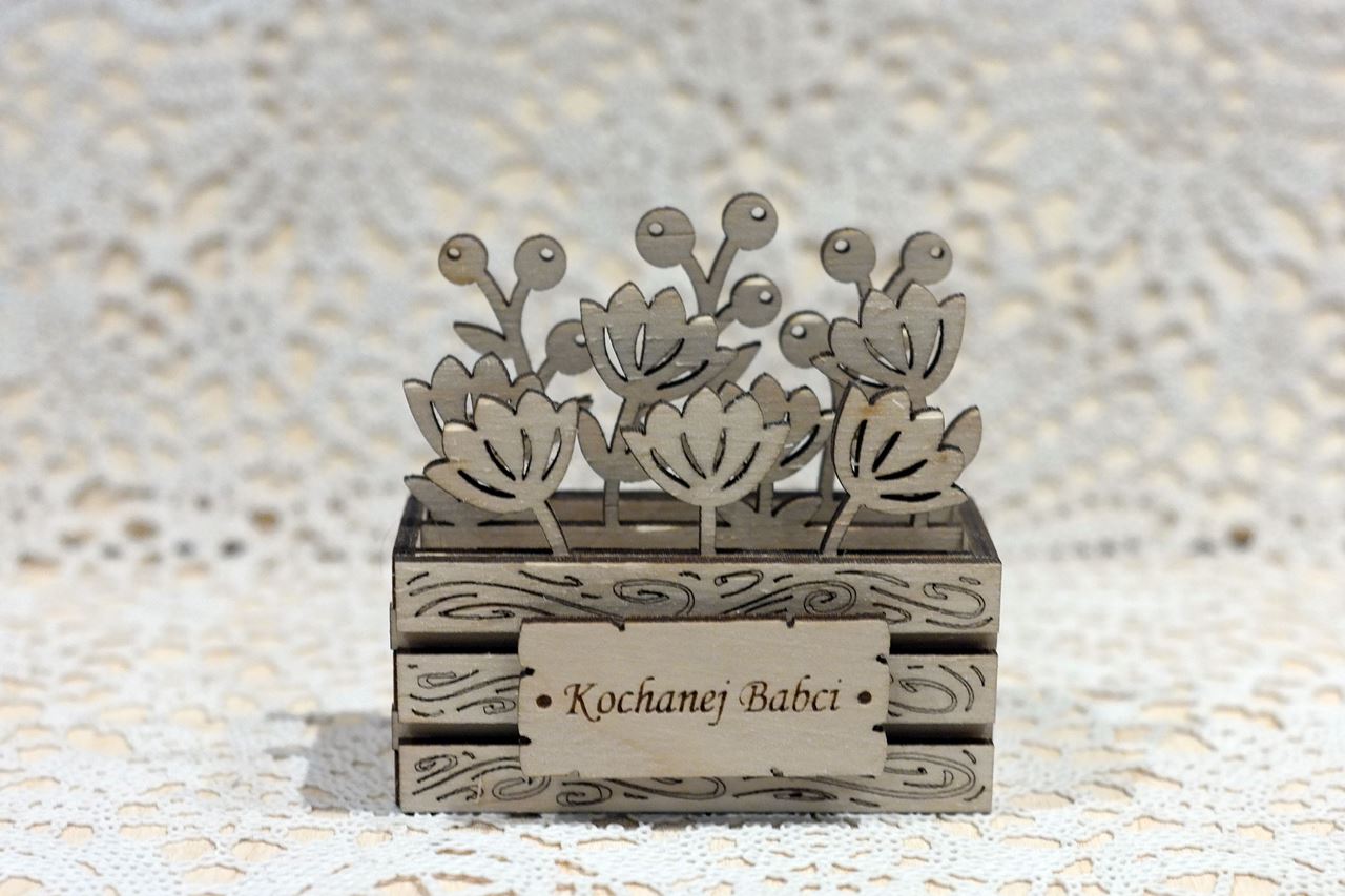 Box deski z kwiatami 3 z tabliczką “Kochanej Babci”