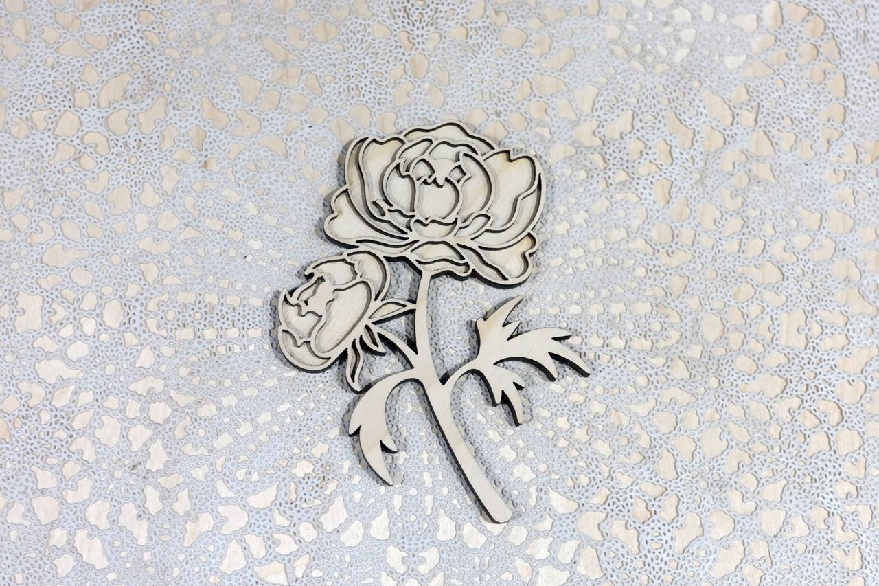 Kwiat wykonany został z dwóch warstw sklejki 3 mm ciętej laserowo.