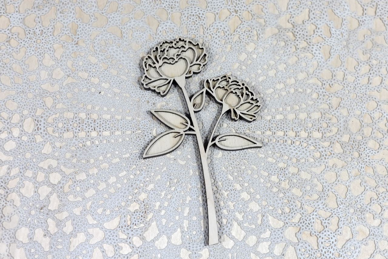Kwiat wykonany został z dwóch warstw sklejki 3 mm ciętej laserowo.
