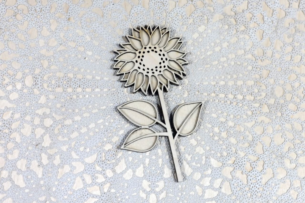 Kwiat wykonany został z dwóch warstw sklejki 3 mm ciętej laserowo.