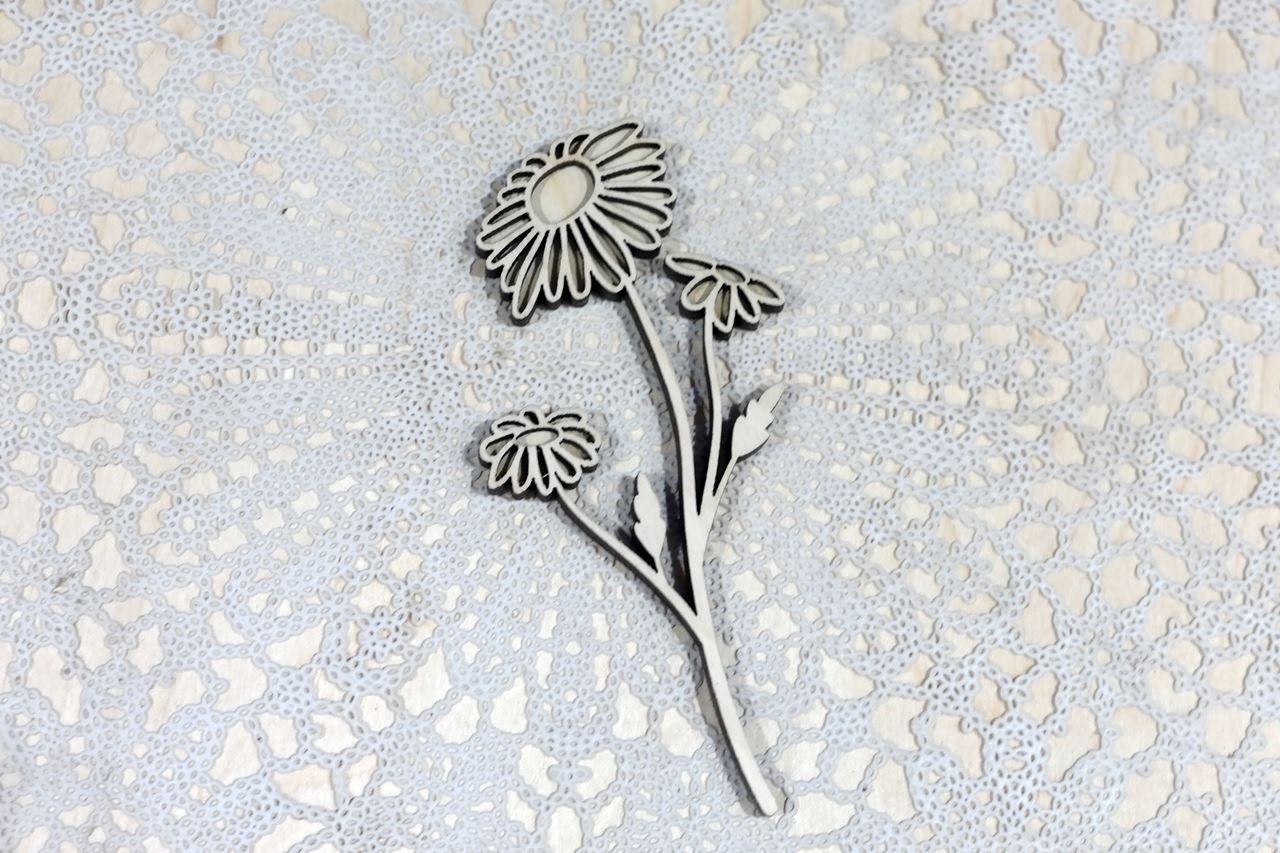 Kwiat wykonany został z dwóch warstw sklejki 3 mm ciętej laserowo.