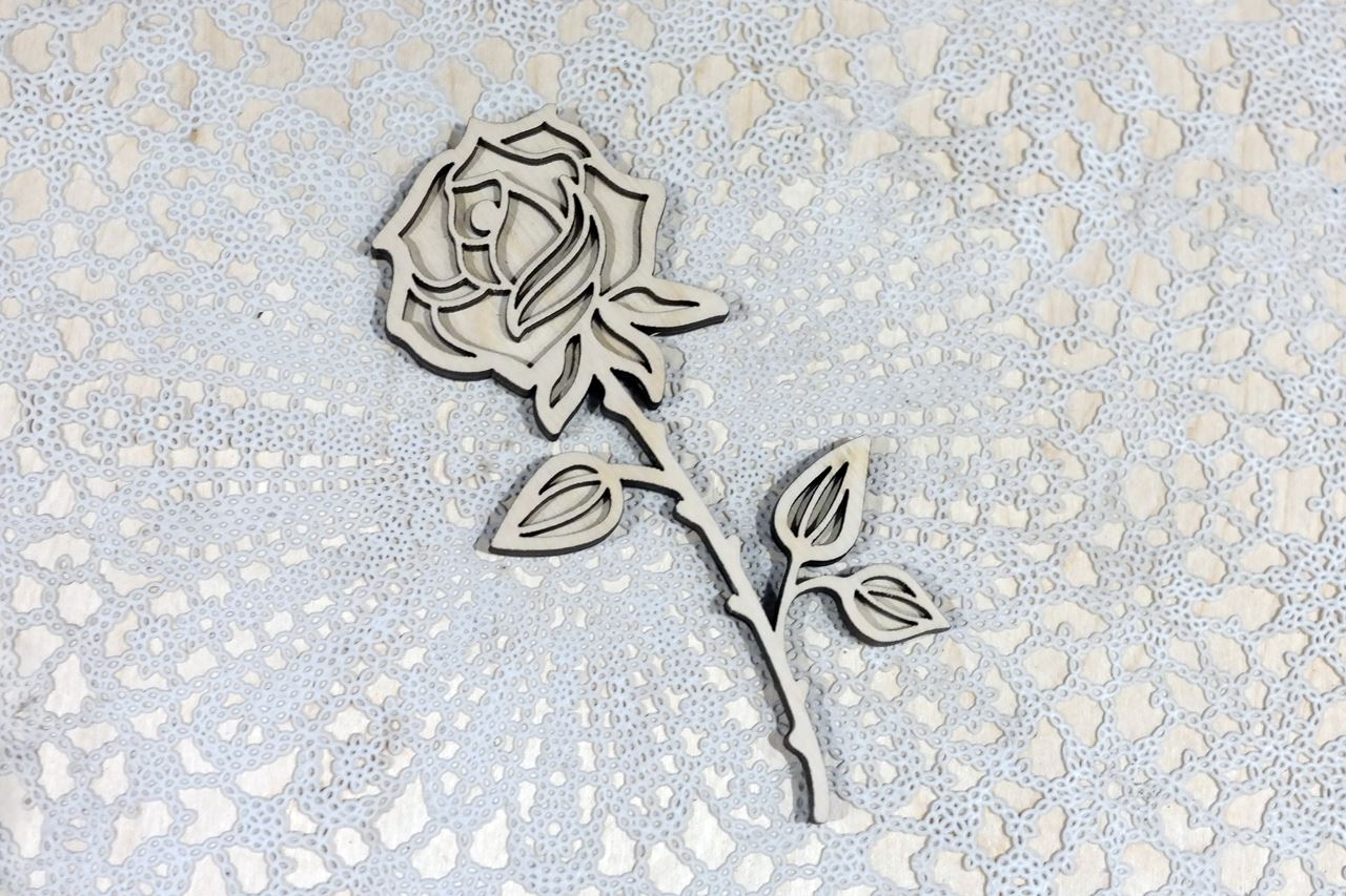 Kwiat wykonany został z dwóch warstw sklejki 3 mm ciętej laserowo.