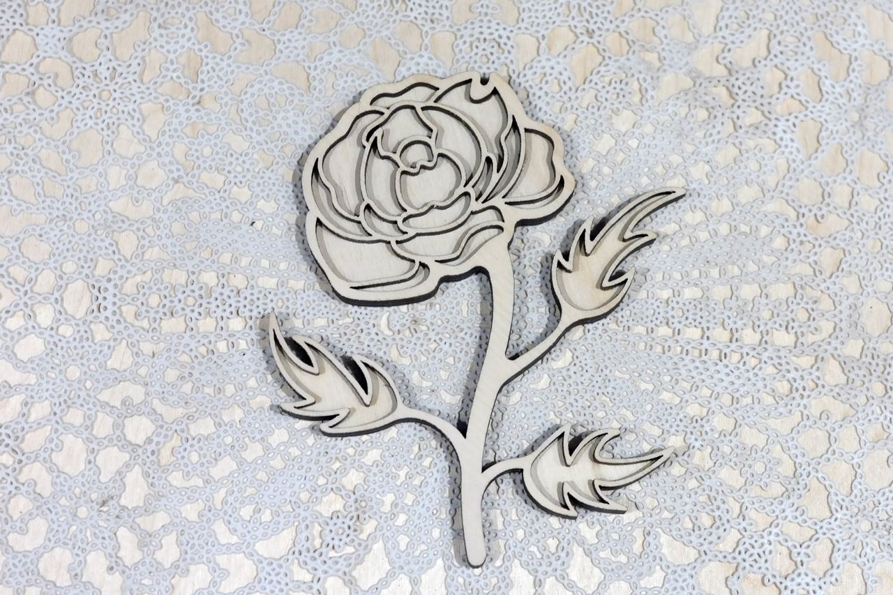 Kwiat wykonany został z dwóch warstw sklejki 3 mm ciętej laserowo.