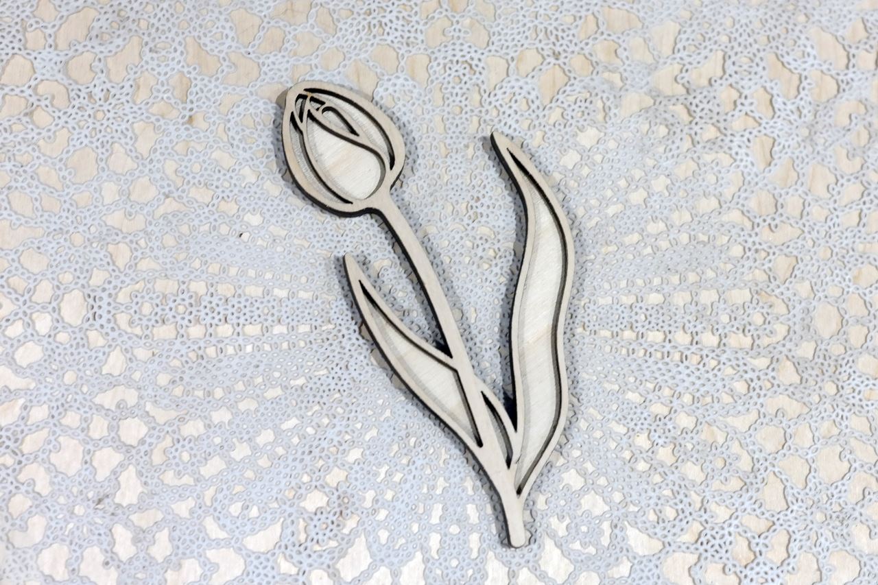 Kwiat wykonany został z dwóch warstw sklejki 3 mm ciętej laserowo.