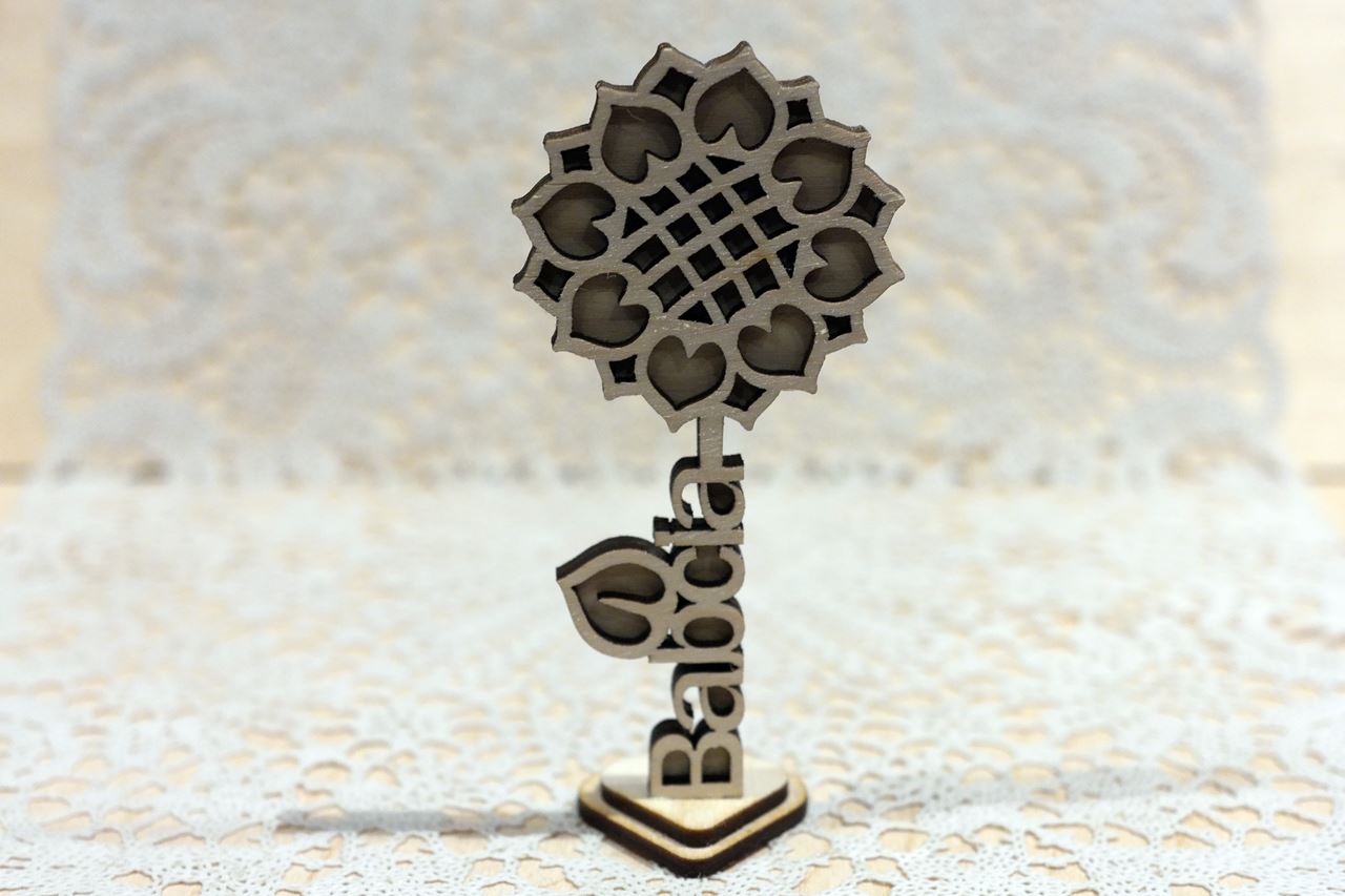 Kwiat wykonany zostały z Dwóch warstw sklejki 3 mm ciętej laserowo.