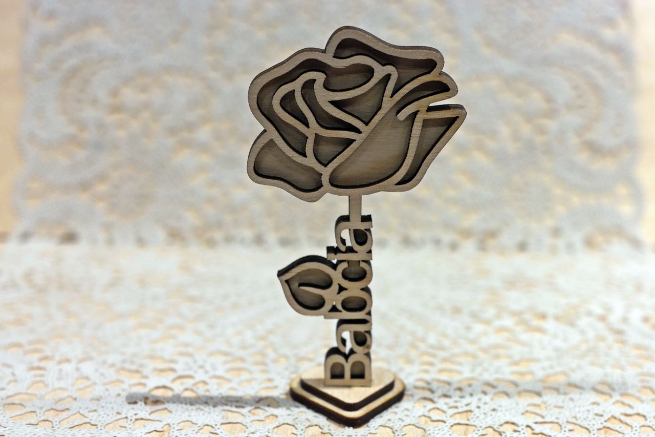 Kwiat wykonany zostały z Dwóch warstw sklejki 3 mm ciętej laserowo.